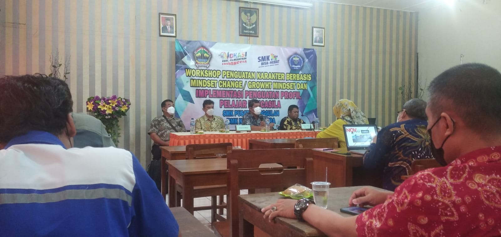 Sedang di tempat yang berbeda, tepatnya di aula sebelah selatan SMKN 1 Blora masih berlanjut workshop hari kedua Dalam Penguatan Karakter Berbasis Minsdset/Growth Mindset. Worksop kedua ini masih mendatangkan dari pihak narasumber Universitas Diponegoro yang pada kesempatan pagi ini dengan melakukan pembentukan Forum Group Discussion (FGD) dari masing –masing program keahlian dengan pembagian kelompok 1 dari Program Keahlian Teknik Otomotif, Teknik Ketenagalistrikan, Teknik Konstruksi dan Perumahan, Kelompok 2 yakni dari Program Keahlian Teknik Mesin, Teknik Perngelasan dan Fabrikasi Logam, Teknik Geospasial, sedang Kelompok 3 dari Program Keahlian Desain Komunikasi Visual, serta Teknik Elektronika.